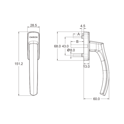 Tay nắm Cmech kiểu Koln dùng lõi khóa K5