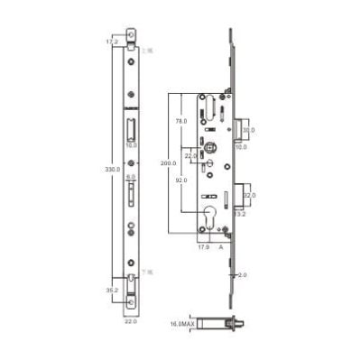 Thân khóa đa điểm Cmech nối với thanh đa điểm inox